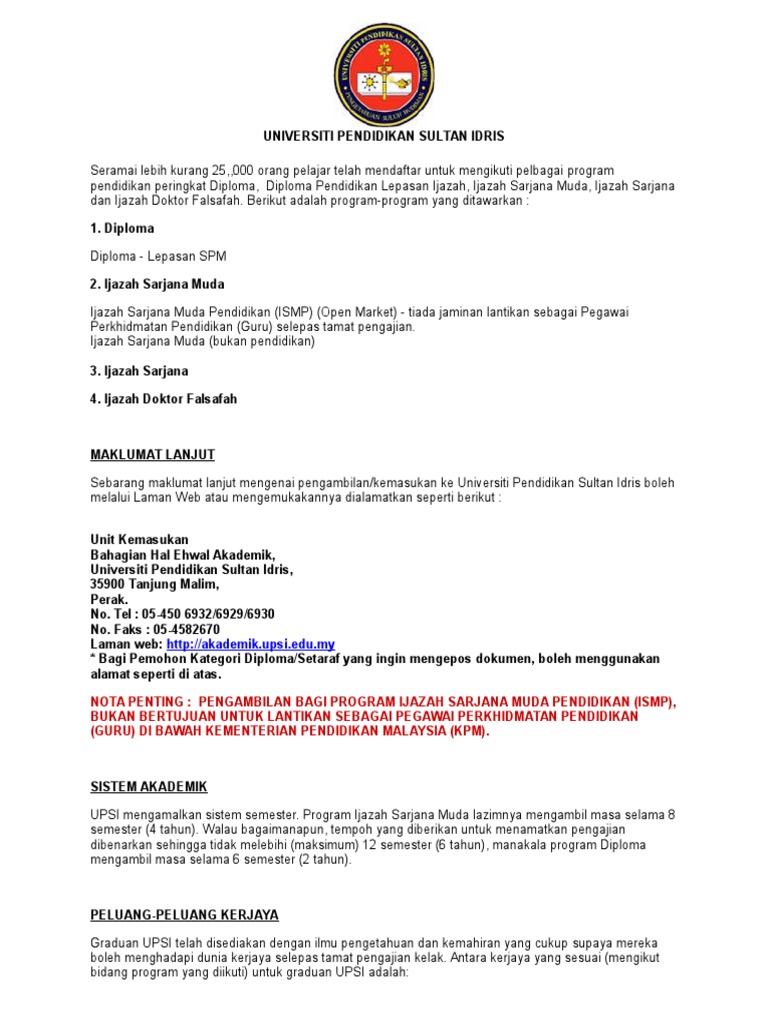 Persatuan teknologi maklumat upsi, tanjong malim, perak. Ia membabitkan pelajar diploma sains, diploma teknologi makmal dan diploma sains (matematik) dalam mengaplikasi pengetahuan yang dipelajari untuk berbakti kepada masyarakat terutama dalam memberi perkhidmatan pendidikan komuniti dari fsm. Page ini bertujuan untuk hebahan tentang program,aktiviti,dll. Universiti pendidikan sultan idris (upsi) merupakan sebuah institusi pengajian tinggi awam yang penting dalam lipatan sejarah pendidikan n. Kolej teknologi makmal perubatan (ktmp) adalah sebuah institusi latihan kementerian kesihatan malaysia(ilkkm) yang melatih individu menjadi seorang juruteknologi makmal perubatan(jtmp) yang dilengkapkan dengan ilmu pengetahuan serta kemahiran yang secukupnya dalam bidang teknologi. Sekarang intan tengah belajar semester 2 (dec 2017) dalam diploma teknologi makanan di politeknik boleh juga kerja dalam makmal, kaji makanan. Based on cos yg telah cik tiey isi dalam pin penerapan upu airitu, my fourth choice adalah ijazah sarjana muda teknologi makmal perubatan uitm. Boleh buat pembakar semangat untuk sesiapa yang akan menjejakkan kaki di upsi. Cara memohon upsi melalui upsi portal. See more of persatuan teknologi maklumat upsi on facebook. Graduan diploma teknologi makmal perubatan akan menjadi seorang juruteknologi makmal perubatan. Jadi ini beberapa gambar kenangan kakmur sepanjang di upsi. Untuk makluman anda, permohonan kemasukan ke upsi boleh dilakukan secara atas talian sahaja.